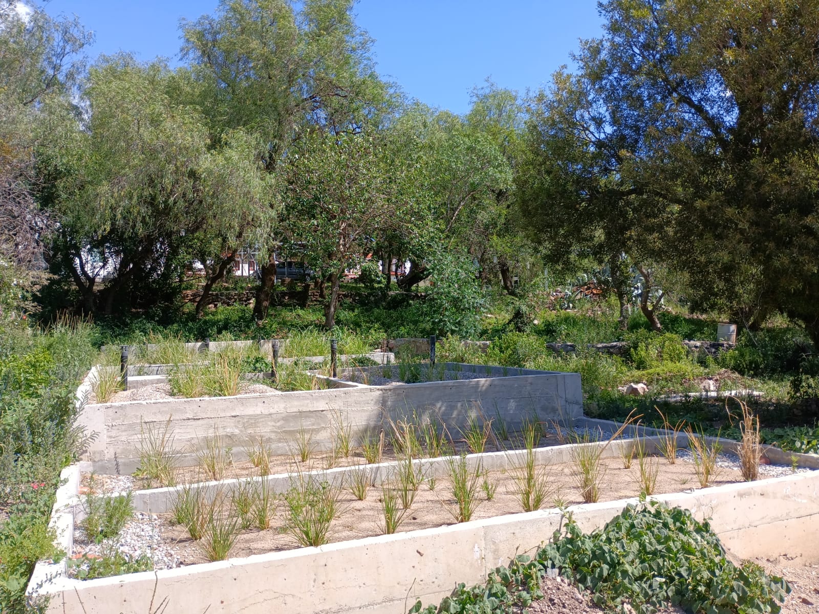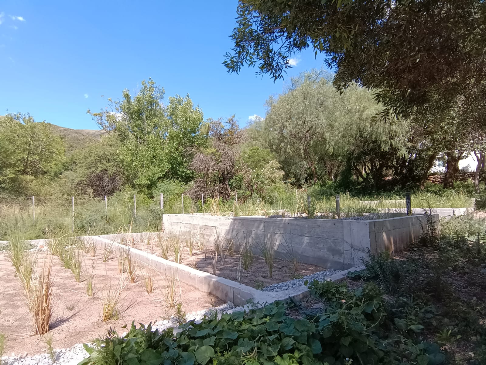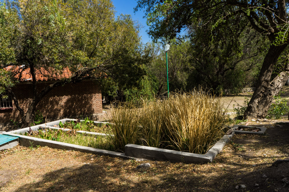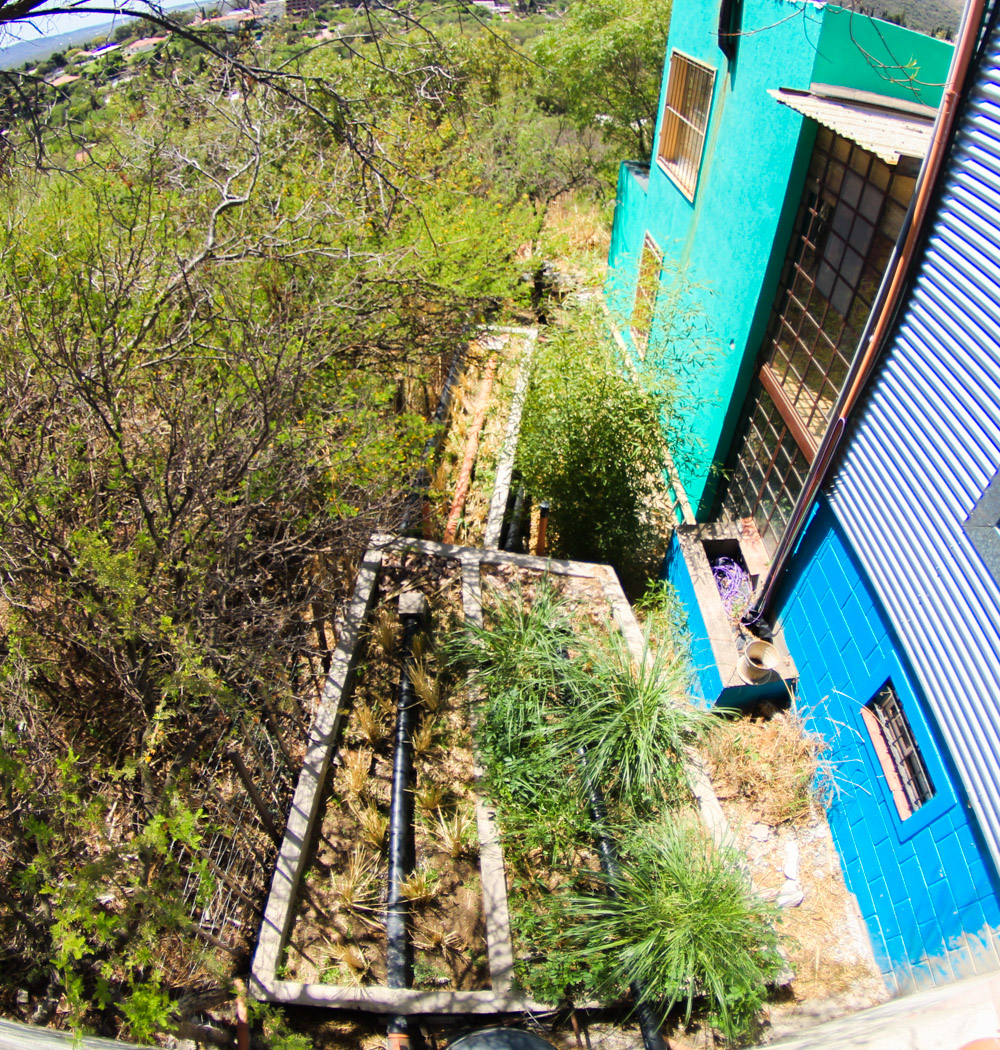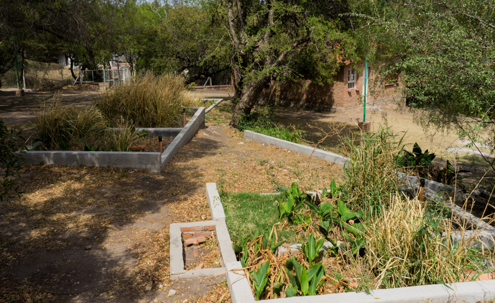 Tratamiento para 60 personas, separando aguas grises y aguas negras. Las aguas grises tratadas son reutilizadas para riego.